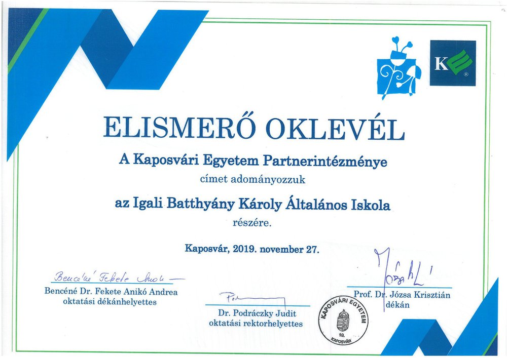 2020 óta az iskolánk a Kaposvári Egyetem gyakorlóhelye ahonnan a fiatal pályakezdő kollégák érkeznek.